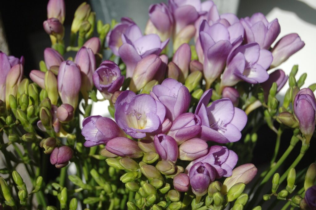 Tra le varietà più eleganti da coltivare in vaso troviamo anche la fresia viola, con fiori possono variare dal lilla delicato fino al viola più scuro, spesso con leggere sfumature interne che rendono ogni corolla particolarmente decorativa.