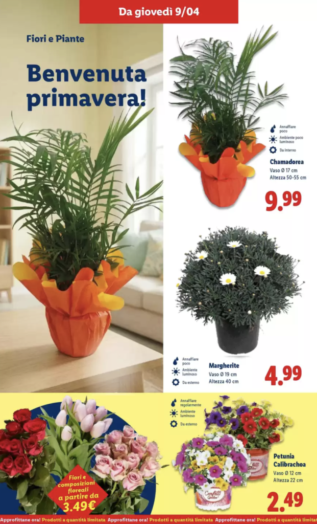 Nel complesso, la proposta Lidl valida dal 9 al 15 aprile si distingue per la sua completezza e per la capacità di rispondere a esigenze diverse, offrendo soluzioni accessibili ma allo stesso tempo funzionali. La possibilità di scegliere tra piante decorative, fiori stagionali e prodotti per la cura del verde consente di intervenire in modo mirato su ogni tipo di spazio, adattando le scelte alle proprie preferenze e alle caratteristiche dell’ambiente.