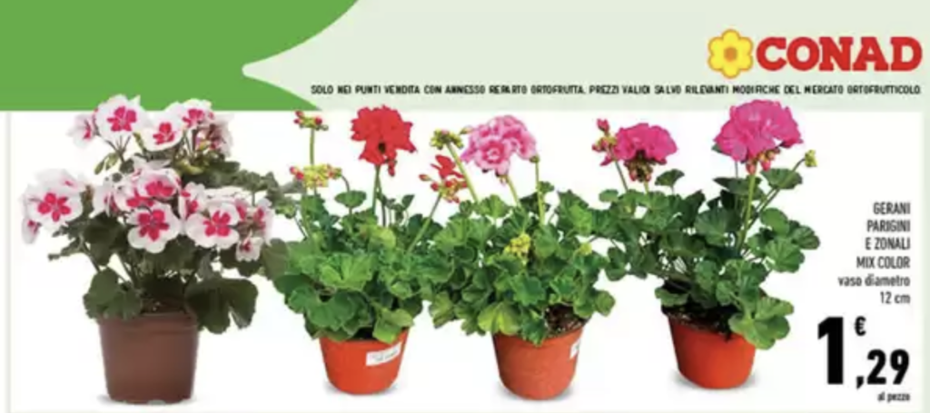 L’offerta si distingue anche per il prezzo particolarmente conveniente: i gerani parigini e zonali mix color sono disponibili a 1,29€ al pezzo, una cifra contenuta che permette di acquistare più esemplari senza incidere in modo significativo sul budget. Questo aspetto rende l’iniziativa ancora più interessante, perché consente di non limitarsi a una singola pianta ma di creare composizioni più complete e curate.