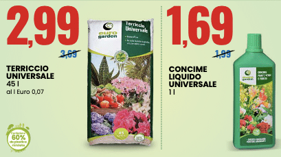 Tra i prodotti proposti troviamo il Terriccio Universale da 45 litri, disponibile a 2,99 euro. Si tratta di un formato capiente e versatile, particolarmente adatto sia per il rinvaso delle piante da interno sia per la preparazione di fioriere, aiuole e piccoli orti domestici. La quantità generosa consente di intervenire su più vasi o di rinnovare intere fioriere senza dover acquistare più confezioni.